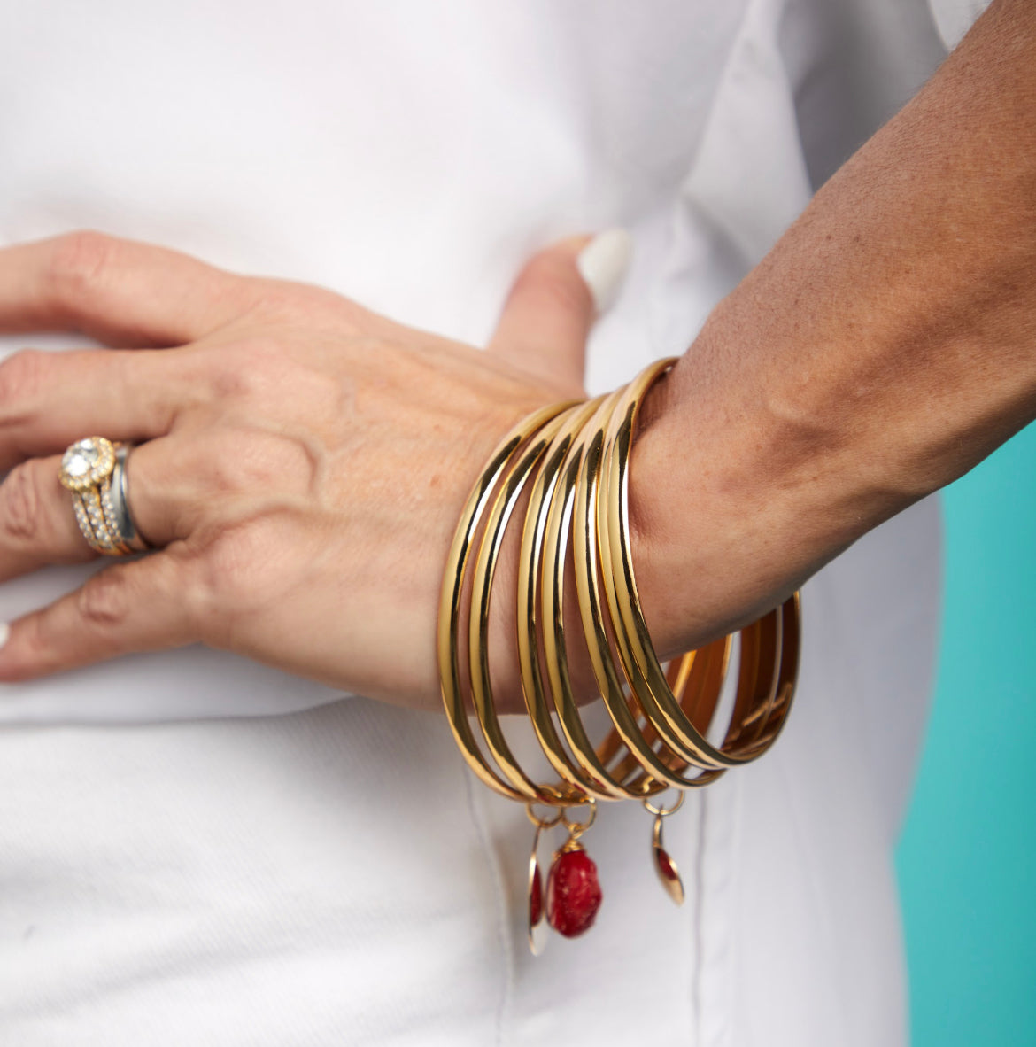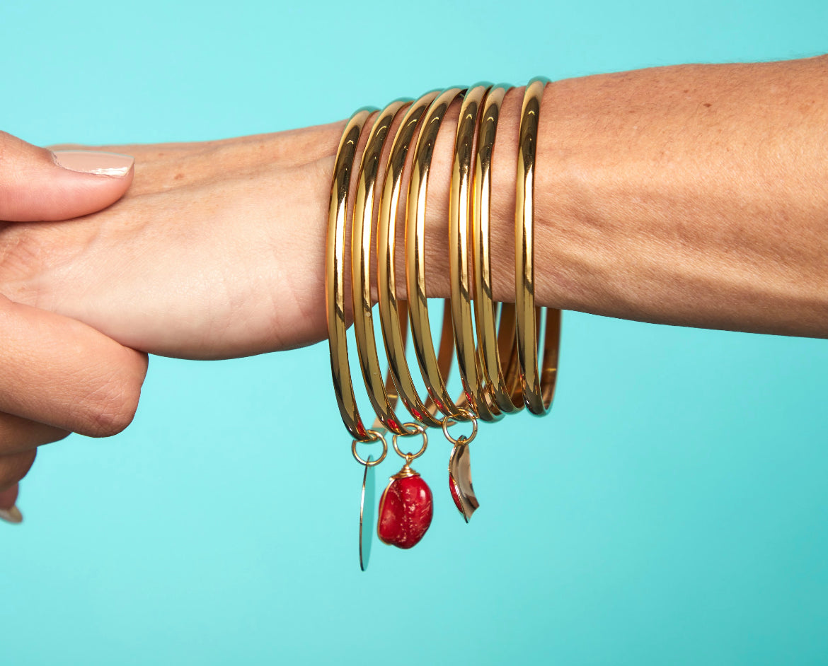 Sientete como toda una mujer de hoy con este hermoso semanario, bañado en oro 18k acompanado de hermosos detalles como el dije amor entre tres y una pieza unica de coral para agregarle un toque especial